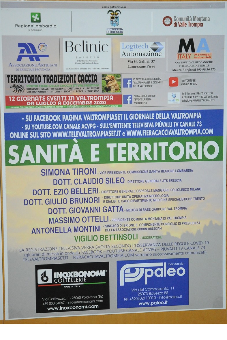 IL DOTT. GIULIO BRUNORI E IL DOTT. NINO GATTA al convegno SANITA' E TERRITORIO del circuito valtrumplino TERRITORIO TRADIZIONI CACCIA - TRASMISSIONE ACVPG LA BELLA VALTROMPIA SABATO 5 E DOMENICA 6 DICEMBRE